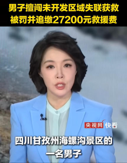男子擅闯未开发区域失联 获救后被罚3000元 并追缴27200元救援费